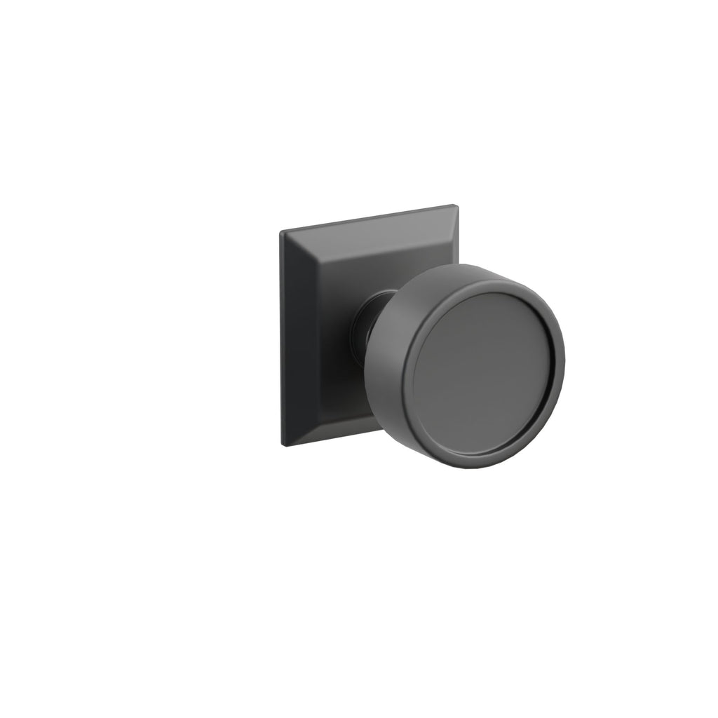 About the Emtek Verve Knob Set with Quincy Rosette - An Elegant Update to a Classic Style - With a machined inset, the new Verve knob is clean with minimal details to distract from its sleek, modern lines. This refined knob can be paired with any rosette or sideplate (as shown here) that Emtek offers, and it makes a chic first impression on an entry set.