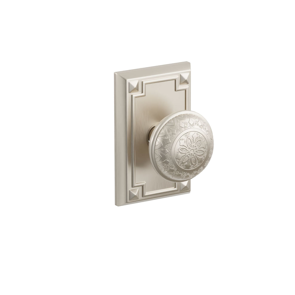 About the Emtek Lancaster Knob Set with Arts & Crafts Rosette - Lancaster is a famous place name in Northern England and is a city steeped in history with Venetian Renaissance design style. Intricate symmetry within its design, with a flowing fractial shape gives a sense of harmony and balance.