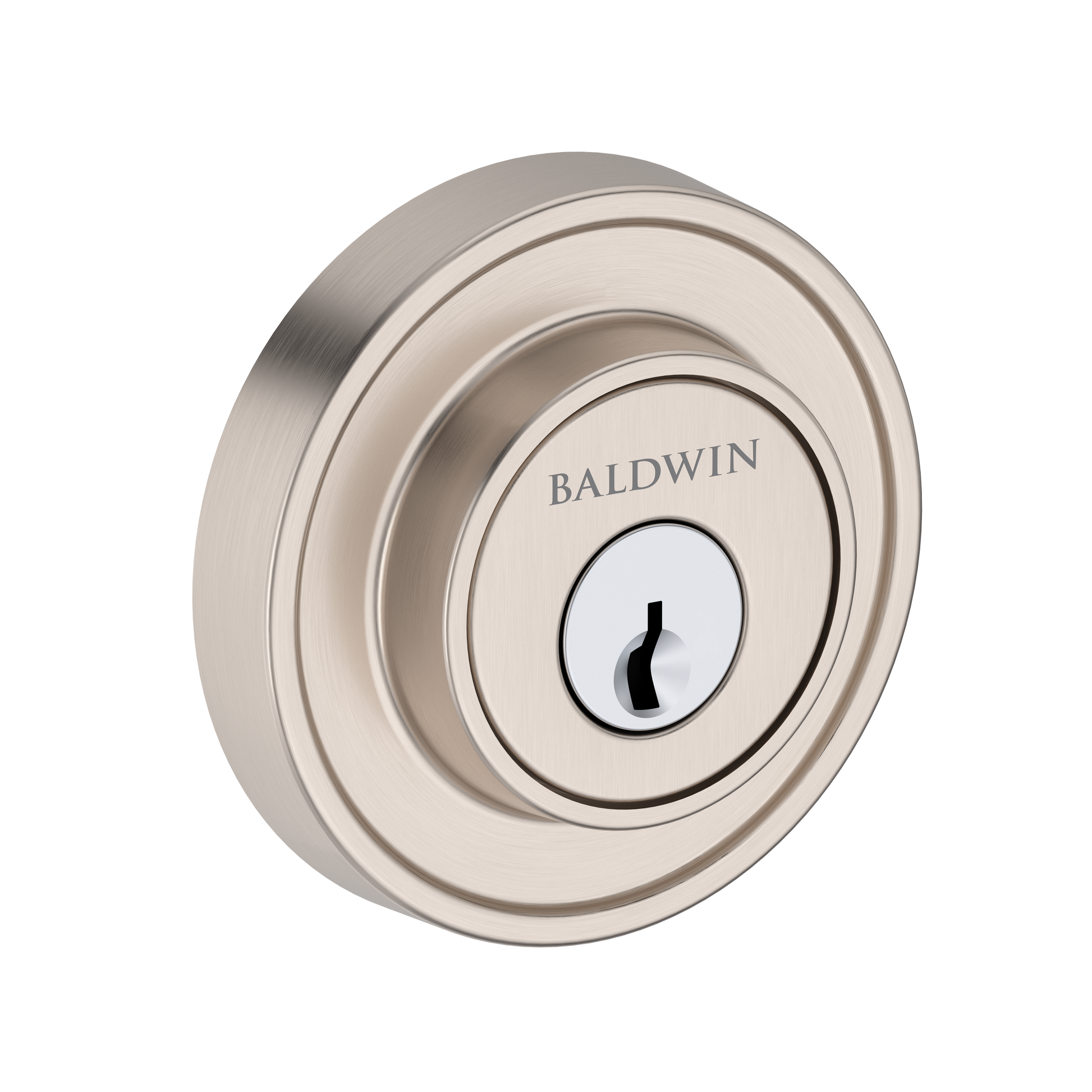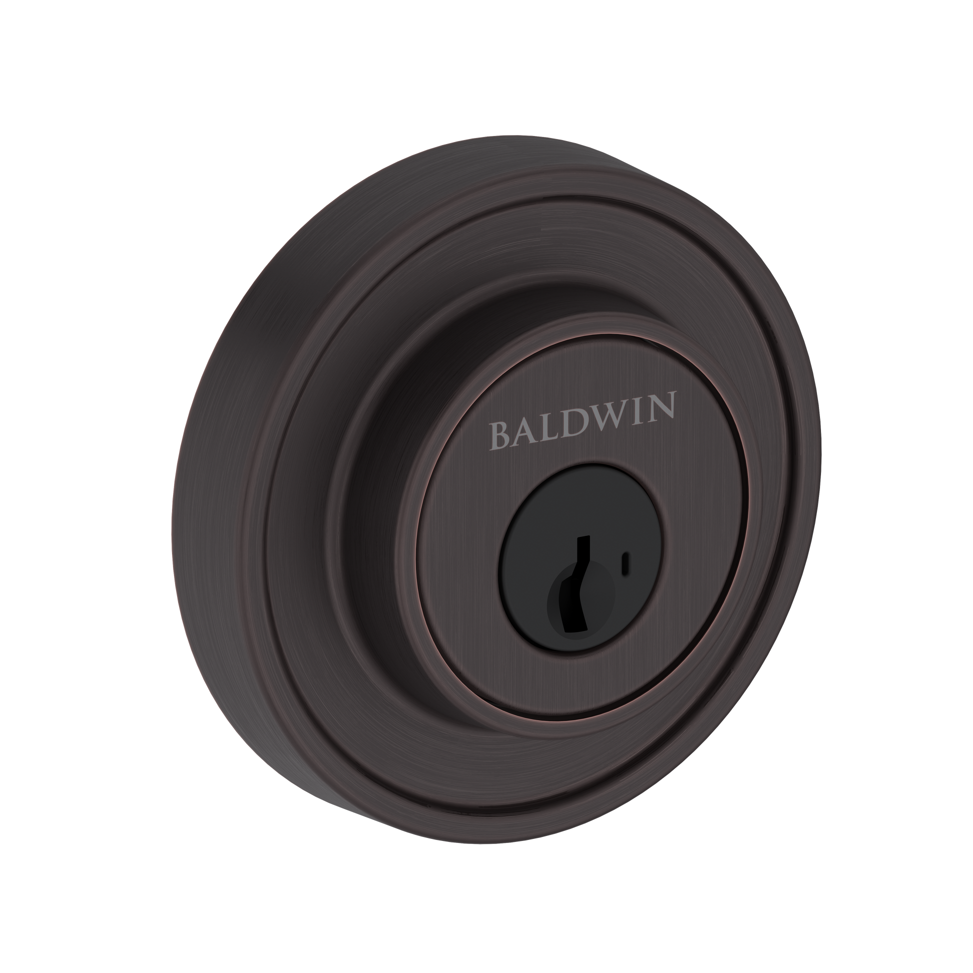 The Baldwin Recessed Round Single Cylinder Deadbolt. Crafted from solid brass and built to last, Reserve is made for real life. With premium finishes, this is hardware that holds up and stands out. High performance meets high style, made to live as boldly as you do. Reserve by Baldwin is made to fit. It works with standard door preps and includes an adjustable latch for either a 2-3/8" or 2-3/4" backset. Designed to fit door thicknesses from 1-3/8" to 1-3/4" with ease. Smooth, simple, and quietly secure. With its soft silhouette and subtle depth, this design adds a refined layer of protection that blends effortlessly into any space. Featuring SmartKey Security®, Reserve by Baldwin lets you re-key your lock in seconds with no locksmith required. It’s smart, secure, and built for real life—whether you’ve lost a key, changed roommates, or just want peace of mind.
