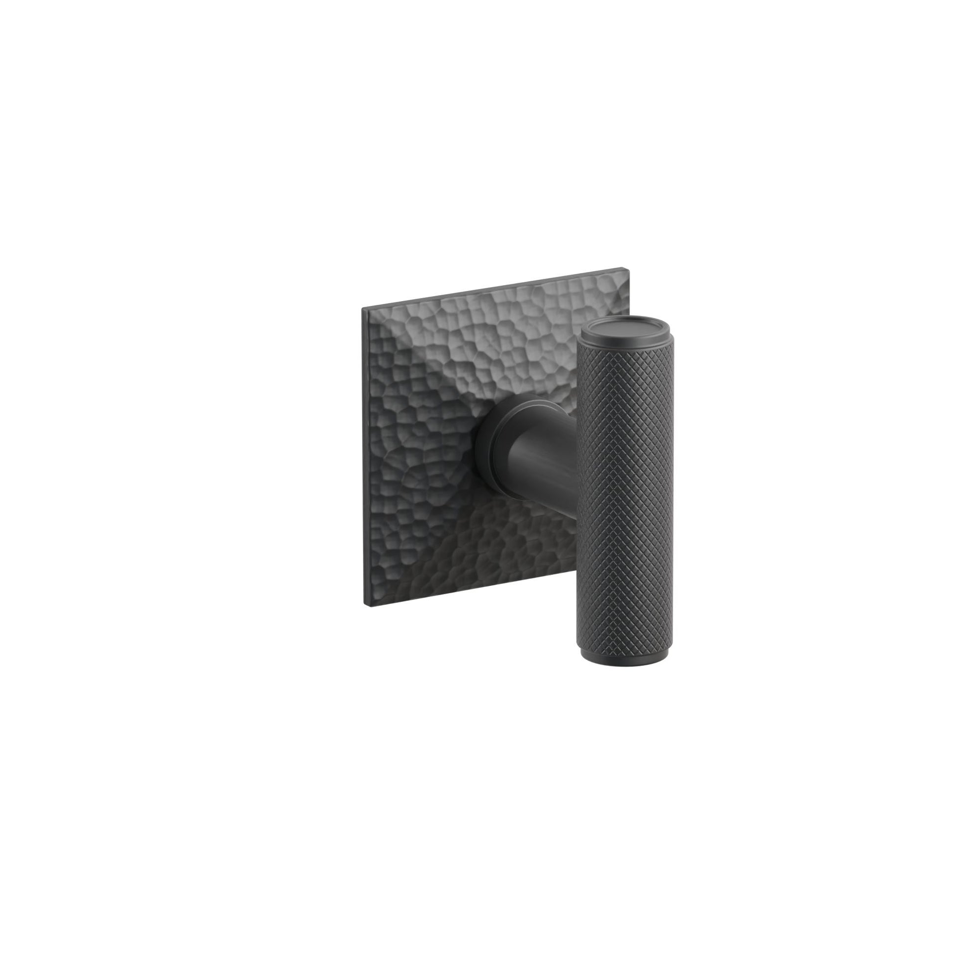About the Emtek Ace Knurled Knob Set with Hammered Rosette - The new Studio Brass product category introduces boutique designs, inspired by the world beyond door hardware. Every detail is explored and crafted with the application of industrial design through traditional and experimental methods. The newest addition to the Emtek Studio Brass Collection is the Ace Door Knob. Visually impactful but accessible, The Ace Knob mimics the profile of a T-cabinet knob, but with interior or exterior door knob application and scale.