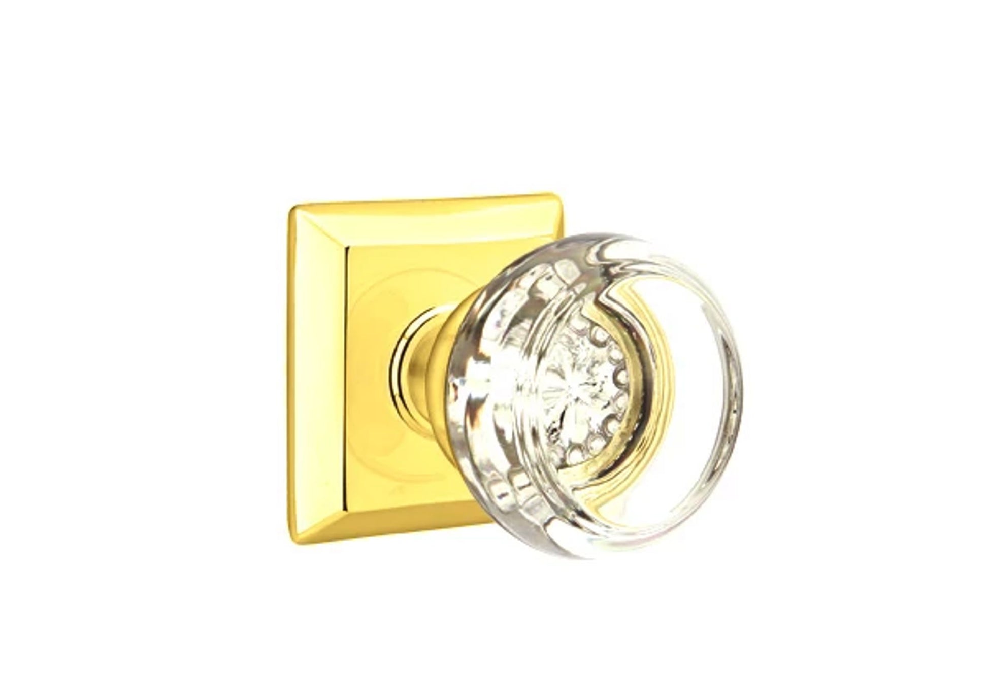 About the Emtek Georgetown Glass Knob Set with Quincy Rosette - Our Georgetown collection of door and cabinet knobs give an air of sophistication with their sleek shape and baroque details. While Georgetown provides a classic doorknob shape in profile, this style elevates with its exclusive details that harken back to the storied legacy of its namesake college and the historic city in which it's located.