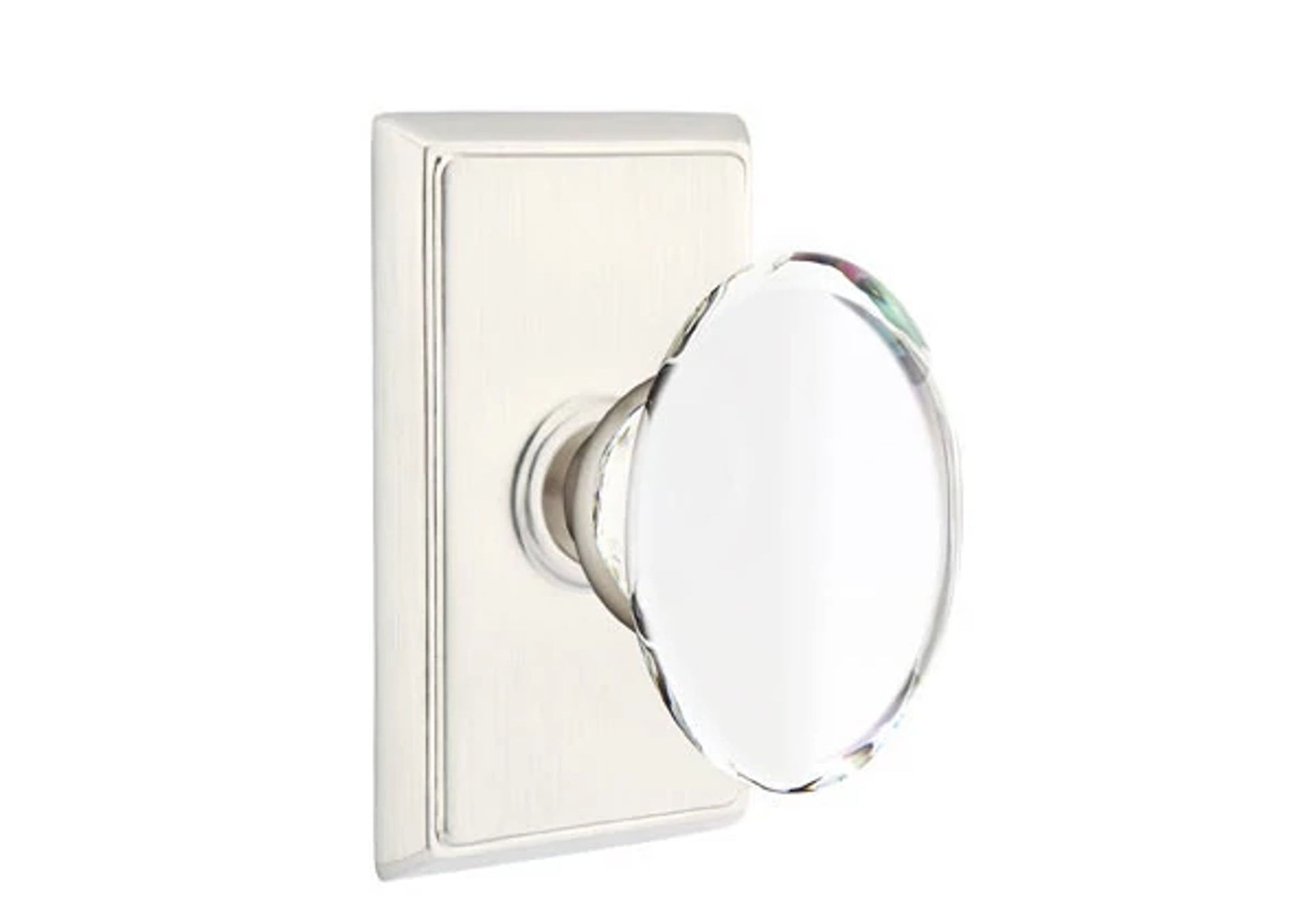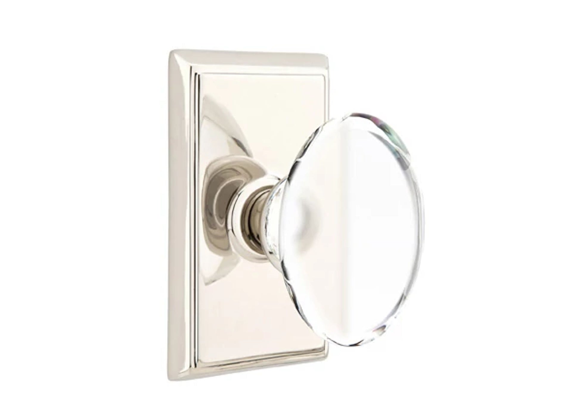 About the Emtek Hampton Glass Knob Set with Rectangular Rosette - Emtek's Hampton Door Knob draws inspiration from the classic style of the Hamptons, with its timeless egg-shaped design that exudes coastal elegance. This knob offers a remarkably elevated hand feel, combining both functionality and sophistication for your doors. Available in an array of 1 finishes, the Hampton Door Knob lets you infuse the classic charm into your interior decor, creating a tasteful and lasting impression.