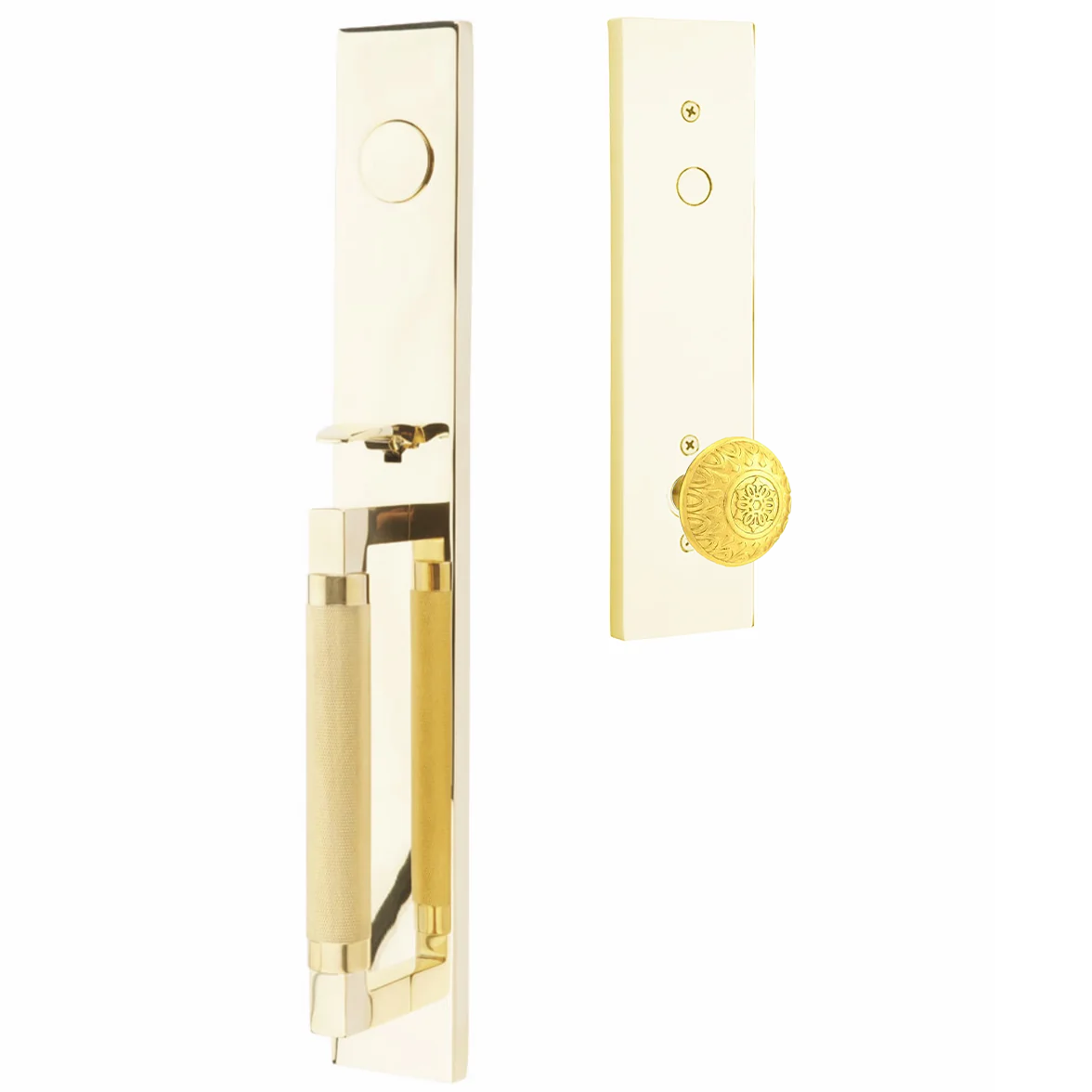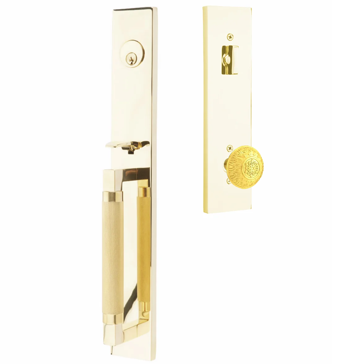 Emtek Hercules Knurled Tubular Entry Set Full Length with Lancaster Knob