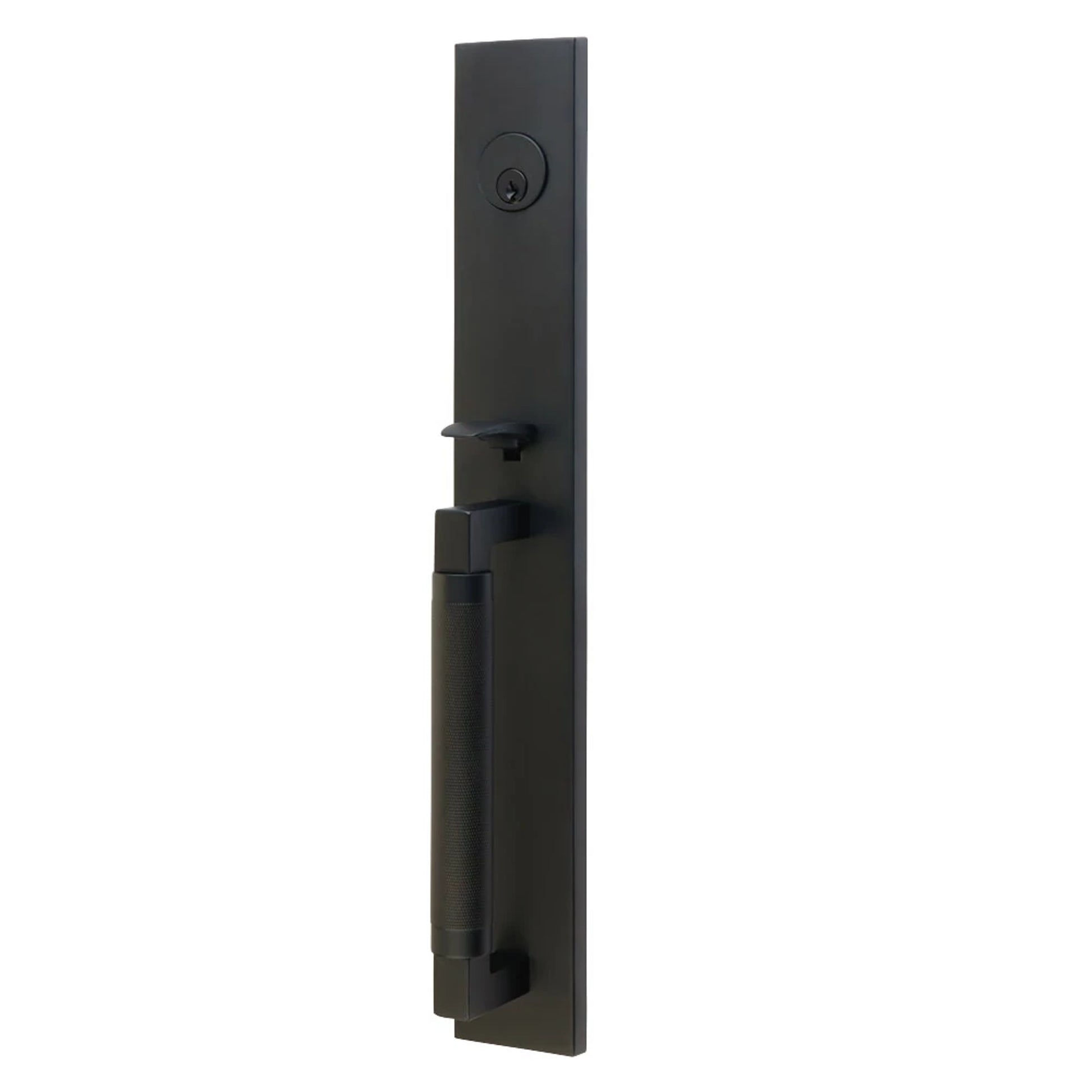 EMTEK’s Hercules Entry Sets are an expansion of our popular Bauhaus-inspired lever style of the same name. Paired with a Modern Rectangular Trim, the Hercules Entry Sets are available in Sectional, Monolithic, and Full Length profiles. The knurling detail evokes either an industrial or decorative element depending on the finish and can coordinate with other knurling throughout the home.