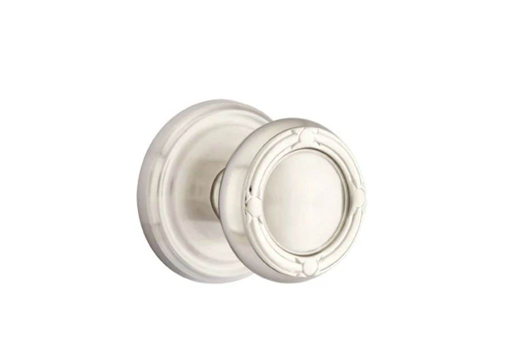 About the Emtek Ribbon & Reed Knob Set with Regular Rosette - With a classic look that draws inspiration from French design following the final days of Versailles, the Ribbon & Reed Knob features a graceful ribbon-like pattern encircling a reed. With its elegant and intricate detailing, the Ribbon and Reed Knob not only provides a secure and ergonomic grip but also serves as a stunning focal point, making it a distinguished choice for those who appreciate the beauty of traditional craftsmanship.